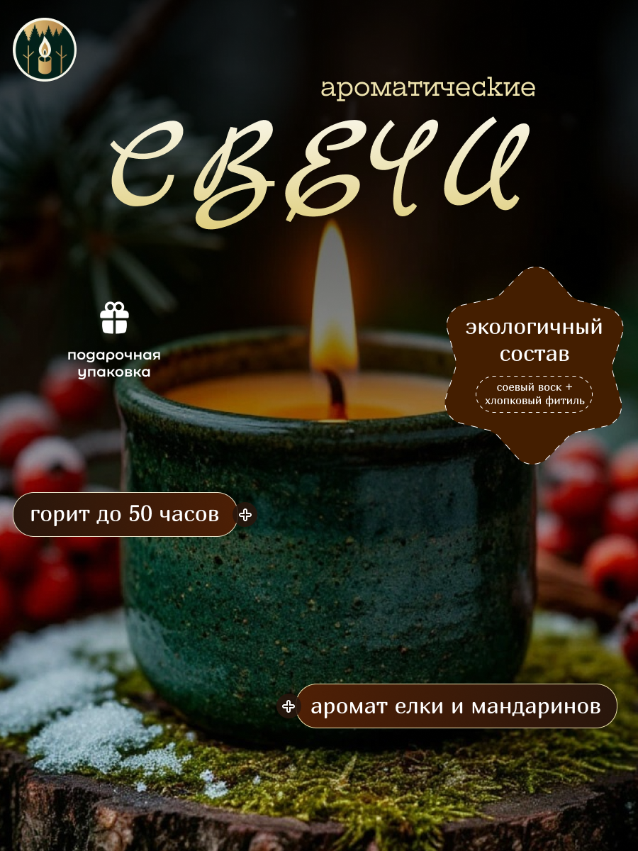 "Ароматическая свеча 🔥 Горит до 50 часов — хватит на все праздники